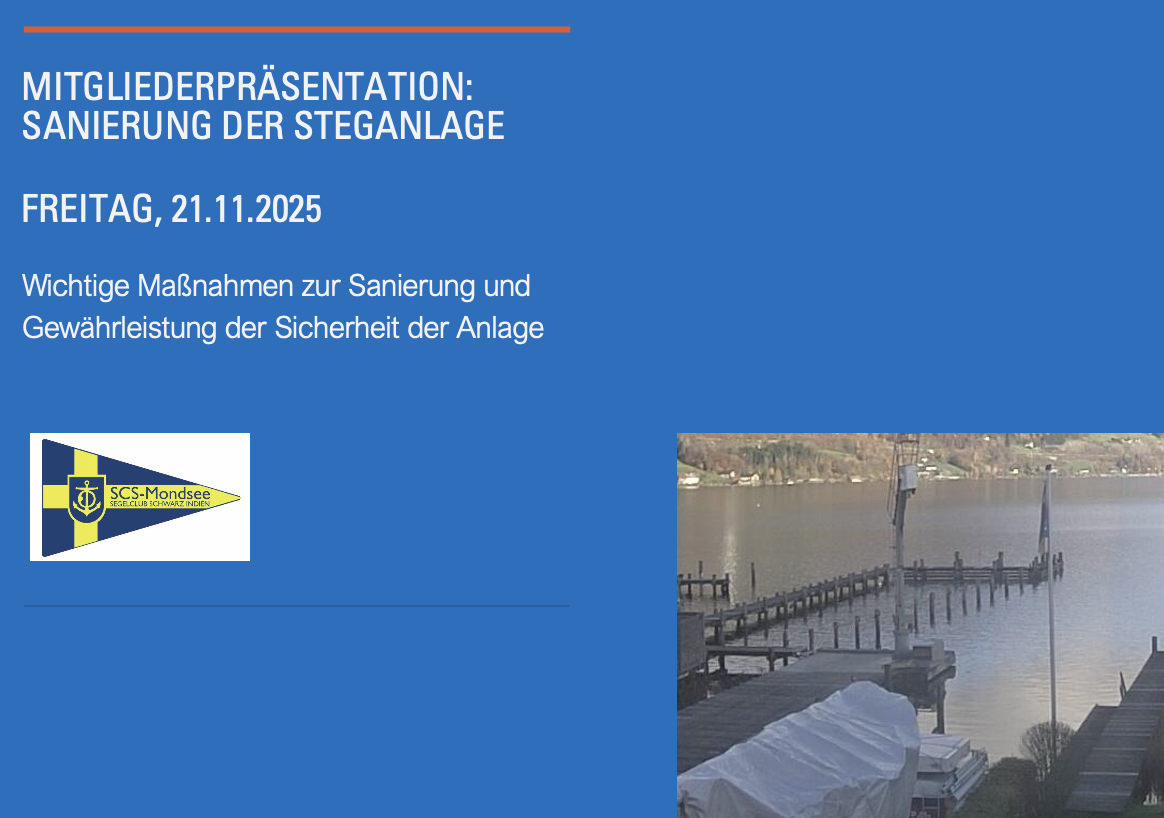Höhepunkt des Jahres. Das erste August-Wochenende war auch heuer wieder der Höhepunkt des Jahres im SCS-Vereinsleben. Am Freitag ging die SCS-Generalversammlung des Jahres 2024 über die Bühne, knapp 60 Mitglieder waren gekommen und hatten sich über das abgelaufene Vereinsjahr informieren lassen. Die wesentlichsten Eckpunkte: Einige neue, spannende Mitglieder sind hinzugekommen – herzlich willkommen! Der Verein hat mehr Geld eingenommen als ausgegeben, also stehen genug Mittel für die anstehenden Terrassen-und Steg-Sanierungsarbeiten zur Verfügung. Der alte Vorstand wurde ebenso ohne Gegenstimme und Enthaltung entlastet wie der Kassier. Ein neuer Vorstand wurde – auch das einstimmig ohne Stimmenthaltung – gewählt und ist ab sofort im Amt: Obmann Johannes Prack, Vize-Obmann Viktor Lassnig, Oberbootsmann Andreas Großschädl, Kassier Lennart Weitgasser und Schriftführer Klaus Puchleitner.