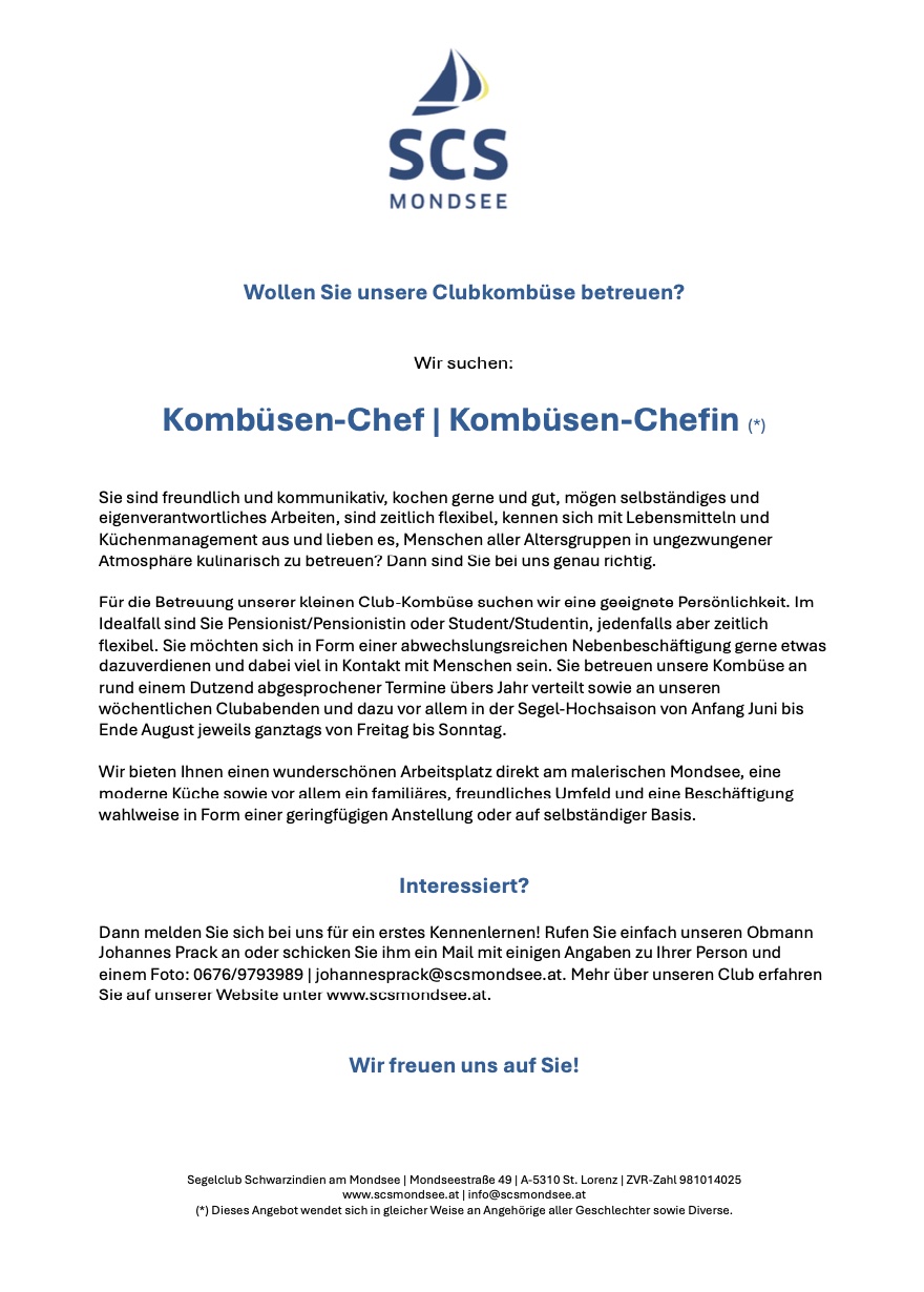 Gute Nachricht: Klaus Berger ist zurück. Bei der Generalversammlung im vergangenen August hat unser allseits beliebter Segeltrainer ja seinen Entschluss bekannt gegeben, als Segellehrer im SCS aufhören zu wollen. Nicht nur den Vorstand, sondern auch viele Mitglieder hat diese Nachricht ein wenig traurig gestimmt – weil Klaus im Laufe der Jahre ein fester Bestandteil unseres Clubs geworden ist. Der Vorstand hat Klaus daraufhin gebeten, seinen Rückzug noch einmal zu überdenken und ein neues Konzept für die Jugendarbeit im SCS vorzulegen. Das ist geschehen, der Vorstand hat das Konzept abgesegnet – und Klaus hat uns unter diesen neuen Voraussetzungen seinen Rückzug vom Rückzug versprochen. Er wird auch 2023 die Jugendarbeit im SCS – mit einem neuen Team von Segeltrainern und -trainerinnen – wieder aufnehmen. Das detaillierte Programm könnt ihr bereits unter dem Menüpunkt „JUGEND“ abrufen. Auch für die erwachsenen Clubmitglieder wird Klaus Angebote zum Segeltraining bereit halten. Lasst euch überraschen! Demnächst wird es dazu ebenfalls Details auf der SCS-Website geben. Welcome back, Klaus! Aber ganz ehrlich – so richtig weg warst du eigentlich eh nie … 😉